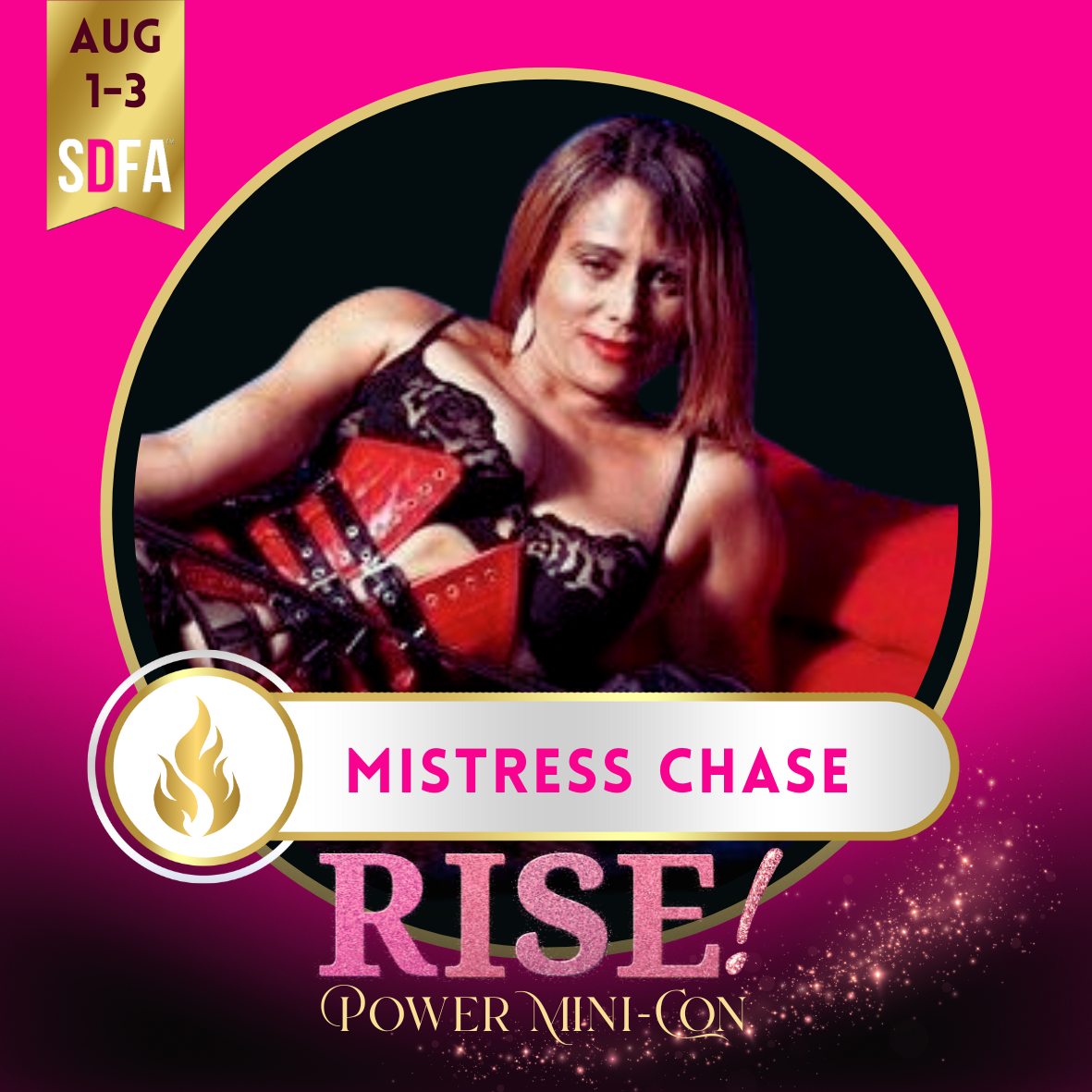 Mistress Chase is a quiet but formidable force, with over 21 years as a Professional Domina. A natural-born rebel drawn to danger and the dark side, she discovered the world of BDSM long before knowing it had a name. Her strength, creativity, and unshakable presence have made her a respected figure in the community, known for wielding her power with grace and precision. Beyond the dungeon, Mistress Chase has quietly mentored, taught, and nurtured others, committed to keeping the legacy of femdom and power exchange alive. Though she often prefers to work behind the scenes, she steps into the spotlight for RISE! — and San Diego is lucky to call her one of their own.